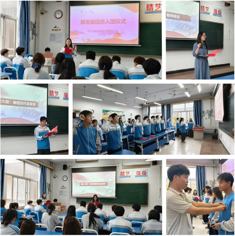 在优秀共青团员代表贺雅婷同学的领誓下,全体新发展共青团员庄严起立,右手握拳举过右肩,以饱满的热情宣读入团誓词,铿锵有力的誓言响彻会场,彰显着共青团员们坚定的理想信念与青春力量。共青团员代表潘朝勃同学分享了自己作为团员的成长感悟,鼓励共青团员传承红色基因,以实际行动践行共青团员使命。新发展共青团员代表常懿同学则表达了加入共青团的自豪与决心,承诺将以共青团员标准严格要求自己,用奋斗书写青春篇章。
