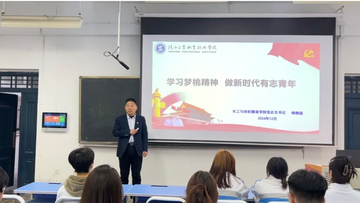 为学习和发扬梦桃精神,激励广大青年做新时代有志青年,12月23日下午,化工与纺织服装学院党总支书记杨修国在崇文东楼101教室以“学习梦桃精神,做新时代有志青年”为题开展讲党课活动,全体发展对象参加了会议。