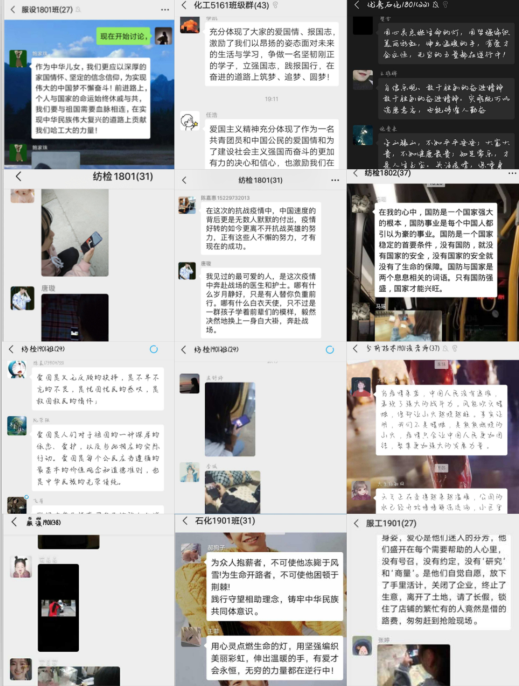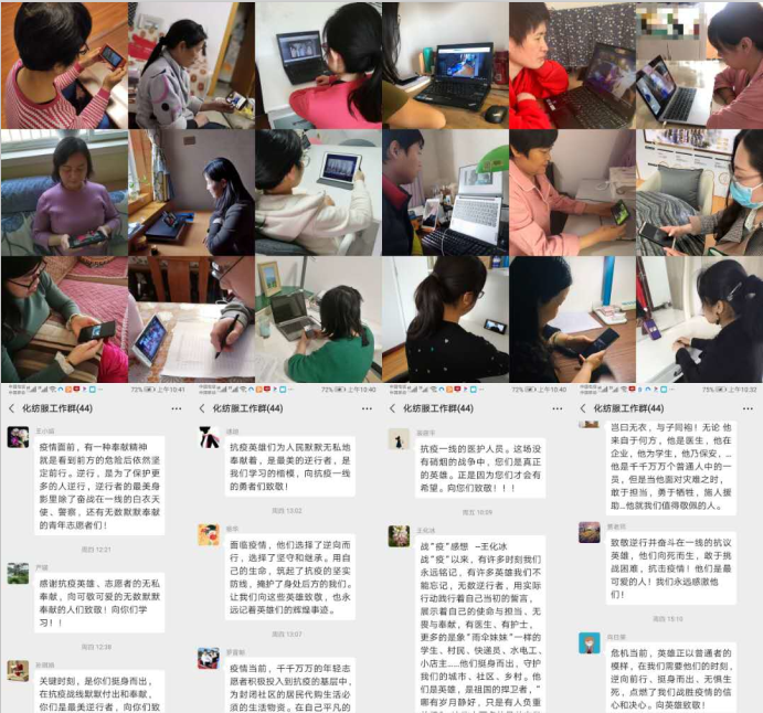 在化工与纺织服装学院党总支书记王化冰的带领下,我院师生积极学习中国共产党故事、新时代中国特色社会主义故事和改革开放故事,进一步落实“停课不停学,停课不停教”的精神。通过本次爱国主义教育活动,我院师生从抗疫英雄们的真实事迹中体会到了伟大的中国精神,始终不忘初心,以强烈的责任感、使命感坚守着自己的职责。
