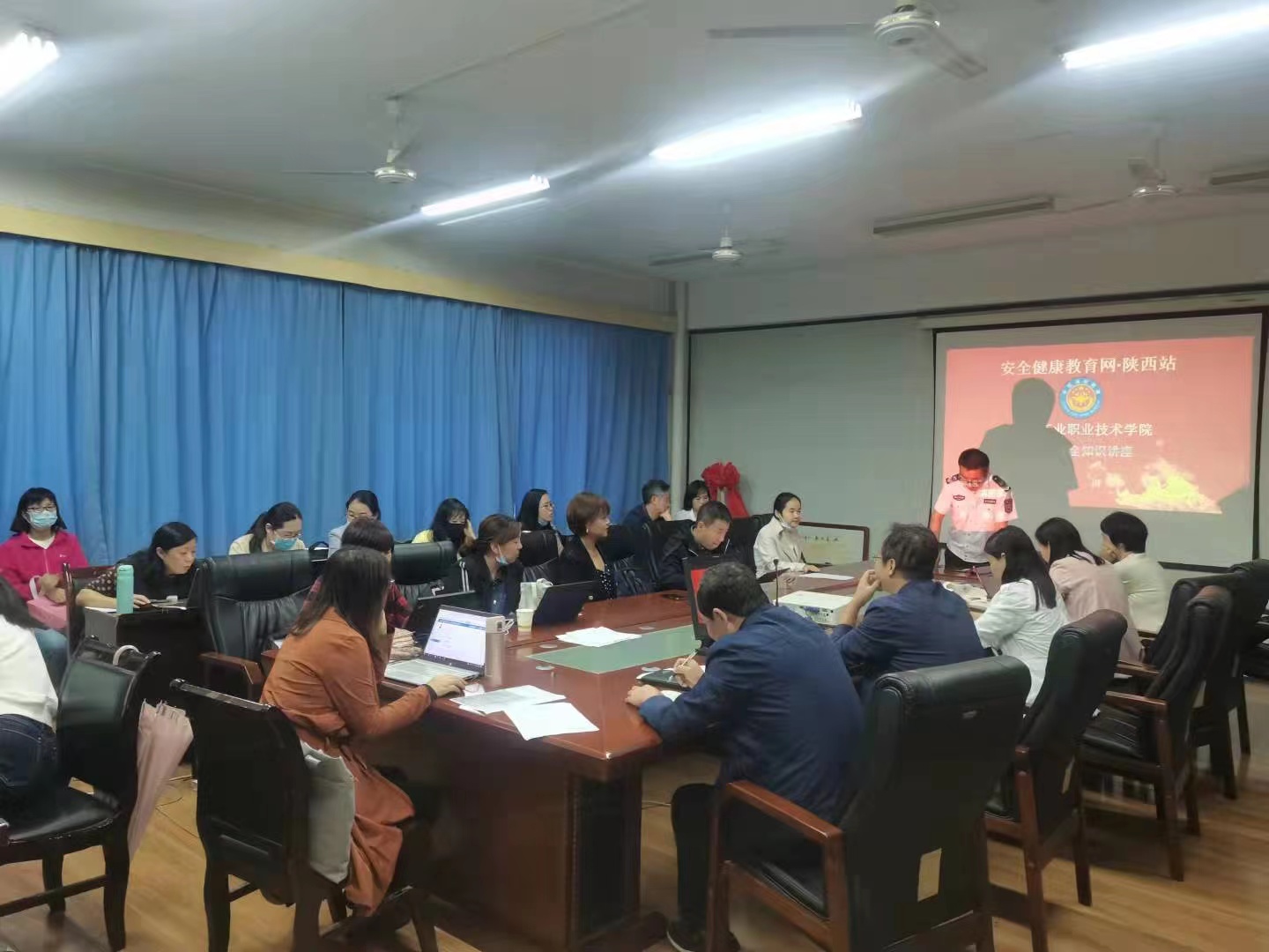 渭城区消防救援大队对参会人员进行了消防安全培训。通过对典型案例的详细分析,使全体师生了解到处置微火的不恰当操作及所造成的严重后果,同时强调在校生要有意识地杜绝使用大功率电器,说明火灾疏散的注意事项,提醒大家日常生活要学会预防火灾、消灭微火、正确报警和疏散逃生。