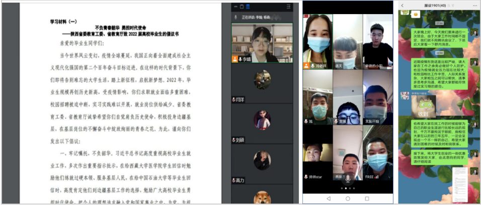 会上,首先学习传达了陕西省委教育工委、省教育厅致2022届高校毕业生的《不负青春韶华 勇担时代使命》的倡议书,号召毕业班级学生要自觉肩负历史使命,积极投身边疆基层,在基层岗位的不懈奋斗中绽放绚丽的青春之花。其次,详细介绍了包括《普通高校毕业生基层就业政策公告》《普通高校学生自主创业政策公告》《普通高校学生应征入伍政策公告》《普通高校毕业生就业服务公告》等四个国家关于2022高校毕业生就业创业的政策和具体措施,并针对学生关注的热点问题进行了一一解答,进一步帮助毕业生争取创业就业机会。