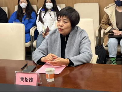 化纺服学院总支书记贾格维对咸纺集团一分厂领导来校交流表示热烈欢迎,在观看完学校的宣传片后,贾格维书记从学院学科概况、师资力量、职教本科等方面介绍了学院发展情况,同时介绍了化纺服学院党总支在师德师风、课程思政以及全国黄大年团队建设等方面取得的成绩和促进省级双带头人工作室方面做的工作,也感谢咸阳集团对我们的支持。化纺服学院教师党支部书记刘迪介绍了党支部近年来取得的成绩,阐述了在工匠基地建设、育人培养、团队建设等方面所做的探索和努力。