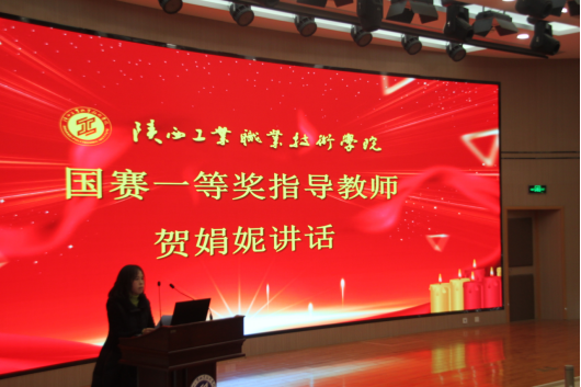 国赛一等奖指导老师贺娟妮详细讲解了参加技能大赛的意义,重点为各位教师和学生分享了备赛经验。贺老师从学校技能大赛的组织、指导教师和参赛学生的遴选、大赛的训练、赛前准备等方面提出了指导性建议。