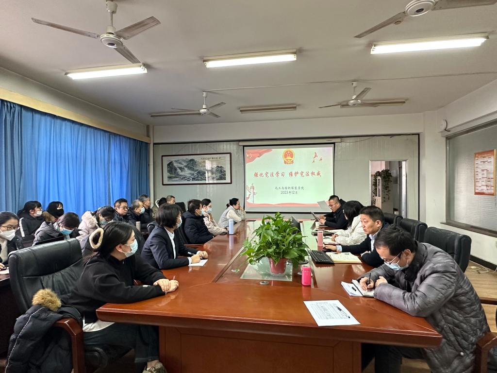 为深入学习贯彻党的二十大精神,自觉维护宪法权威,大力弘扬宪法精神,近日,化工与纺织服装学院在崇文楼811组织全体教师开展宪法学习活动,会议由党总支书记杨修国主持。