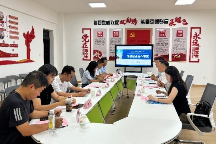 首先,刘迪院长对薛明总经理一行表示热烈欢迎,接着观看了学校专题宣传片《红色匠心》。杨延波副处长介绍了我校校企合作、产教融合等情况。随后,刘迪院长对化工与纺织服装学院的党建工作、专业建设、实训室建设、师资建设、技能大赛、人才培养等情况做了重点介绍。薛明总经理对我校的热情接待表示感谢,并分别从公司的整体情况、基本业务、校企合作等方面详细做了介绍,同时对开展校企合作方面提出了初步设想。