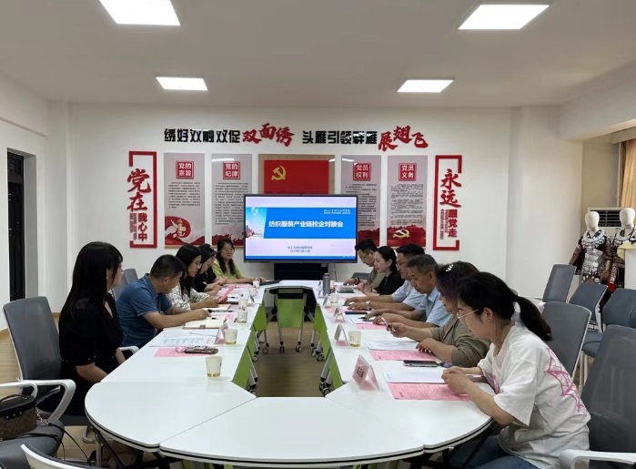 为深化校企合作,推进产教融合,促进专产对接,提升人才培养质量,满足产业链对技能型人才的需求,5月23日,化工与纺织服装学院邀请咸纺集团秦越纺织有限公司生产部经理张栓平、陕西杜克普服装公司总经理谭雪峰、陕西服装工程学院服装学院执行院长徐彬及陕西依婷菲尔商贸有限公司人力资源总监张婷等6人在崇文楼806召开纺织服装产业链校企对接会。党总支书记杨修国、院长刘迪、服装与服饰专业带头人杨华、服装与工艺设计专业带头人袁丰华及服装教研室主任杨玫等人参加会议。会议由刘迪院长主持。