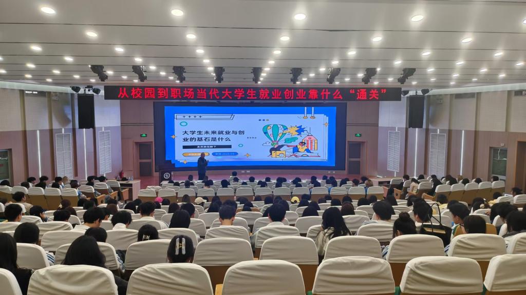 活动中,任伟以《大学生未来就业与创业的基石》为题,结合自己与同伴的创业经历与同学们进行了经验分享,他从横向提高和纵向拓展两个维度出发,通过AI 第四次工业革命到来和大学生AI化教育案例,阐释了“机遇永远都是留给有准备的人”的道理,并从“提高认知”“独立思考”“学会提问”三方面为同学们剖析了当下如何抓住机遇,成就自己。并鼓励同学们不断学习新技术,关注行业动态,积极参与实习实践活动,以提升职业竞争力。在交流互动环节,任伟还就同学们关心的学业规划和就业前景等问题进行了经验分享,同学们纷纷表示受益匪浅。